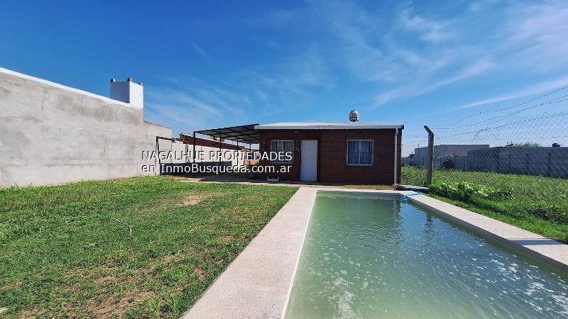 VENDEMOS esta casa casi a estrenar. Excelente estado, esta construida con material premoldeado revestida en ladrillos, los ambientes son amplios y luminosos, consta de comedor amplio cocina, baño y dos dormitorios. Cochera semicubierta realizada con lona y perfiles C. Parque, pileta de fibra de vidrio totalmente equipada con vereda de lajas atérmicas, y todo el ejido del terreno cercado. Desocupada y disponible. ideal para renta temporaria.